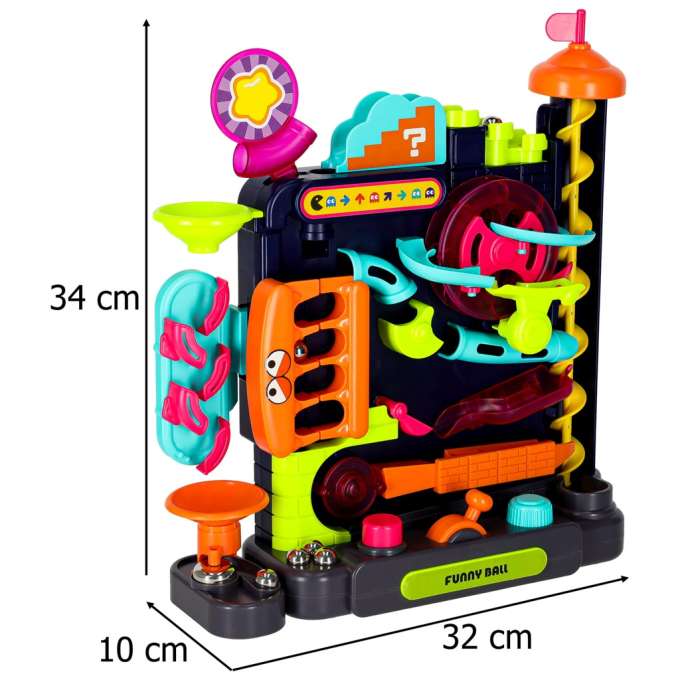 Svirtimis ir rankenėlėmis judinkite figūrėles lentoje, kad kamuoliukai riedėtų į reikiamą vietą.