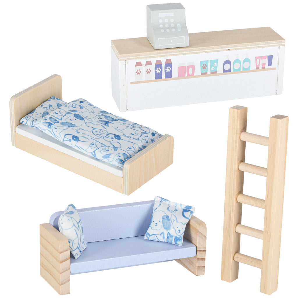 Lagaminas - namelis su gyvūnėliais ir baldais