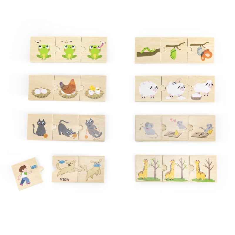8 spalvingos dėlionės, kurias reikia suderinti pagal veiksmus. Tai puikus žaislas vaikams, leidžiantis jiems mokytis ir įtvirtinti žinias apie konkrečių veiksmų atpažinimą