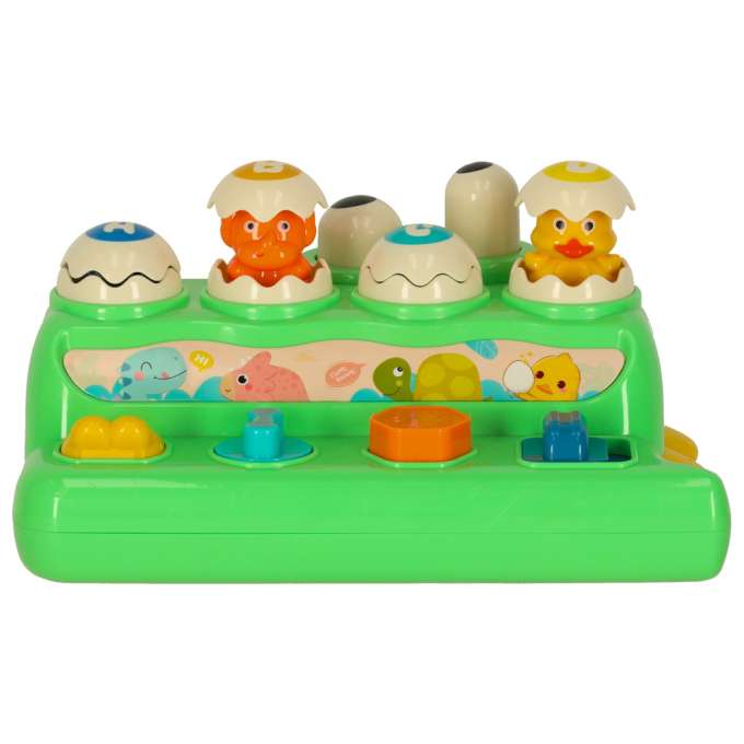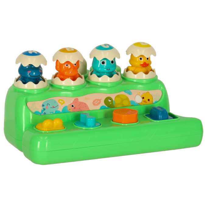 Žaidimas lavinantis vaikų įgūdžius. Reikia pasukti, paspausti mygtukus, kad iššoktų kiaušinis, o tada pataikyti su plaktuku, kad jis užsidarytų.